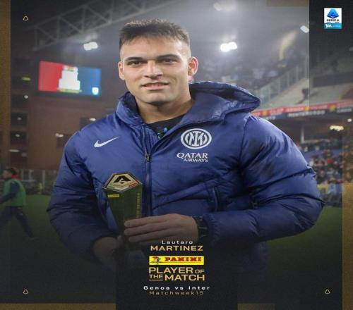 意甲第15轮,国际米兰客场2-1击败热那亚,此役传射建功的劳塔罗-马丁内斯当选意甲官方全场最佳球员。