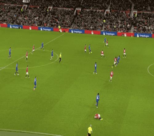 上半场补时阶段,曼联获得角球,B费将球开出,约罗做了一个完美的挡拆,卡塞米罗后点头球破门。