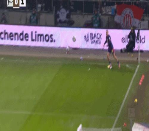 第90+3分钟,劳姆送点,卡尔斯主罚点球命中,圣保利1-1莱比锡